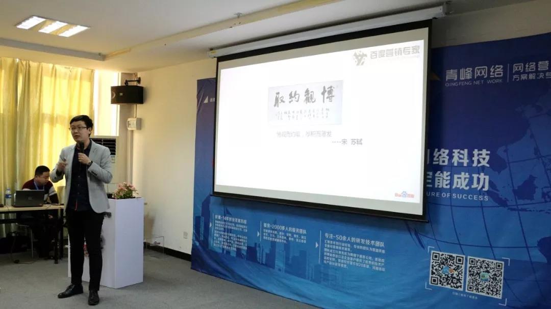 百度直通車洛陽城市總經(jīng)理陳語冰先生,給大家?guī)砹恕安┯^約取,贏響2018!”主題演講,給大家講解了:從感性到理性,如何讓客戶的每一分錢的廣告費都花到刀刃上。