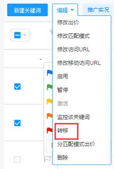 關(guān)鍵詞可以很方便地轉(zhuǎn)移到其它推廣單元,前提是你想轉(zhuǎn)移的推廣單元不包含相同的關(guān)鍵詞。轉(zhuǎn)移后的關(guān)鍵詞,原有的設(shè)置如匹配方式、出價(jià)、訪問URL都會(huì)保持不變。